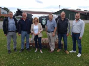 Zu einem fachlichen Austausch zwischen Rinderzuchtverband, Landwirtschaft und Politik trafen sich am 1. Juli 2024 Katharina Jensen, MdL, und Vertreter des Vereins Ostfriesischer Stammviehzüchter VOSt Geschäftsführer Dr. Cord-Hinnerk Thies, Vermarktungsleiter Heiner Saathoff, Exportleiter Heiner Tholen und Vorstand Jann Janssen sowie vom Kreislandvolkverband Friesland Lars Kaper.