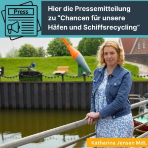 Die Küsten- und Seehäfen in Niedersachsen haben ein erhebliches wirtschaftliches Potenzial und sollen unbedingt weiter vorangebracht werden. Deswegen hat die CDU-Fraktion im niedersächsischen Landtag einen entsprechenden Antrag formuliert, der nun in die Erstberatung gegangen ist. „Unter anderem fordern wir darin, dass die zweite Ausbaustufe des Jade-Weser-Ports in Wilhelmshaven noch in diesem Jahr hinsichtlich Planung und Genehmigung auf den Weg zu bringen ist“, sagt Katharina Jensen, CDU-Landtagsabgeordnete für Friesland/Jade mit ihrem Patenwahlkreis Wilhelmshaven. Der Antrag wurde im Rahmen einer in dieser Woche erfolgten Anhörung in Hannover von Branchenvertretern sowie Vertretern der Hafenstandorte Emden, Stade und Wilhelmshaven bereits sehr positiv aufgenommen, berichtet Jensen.